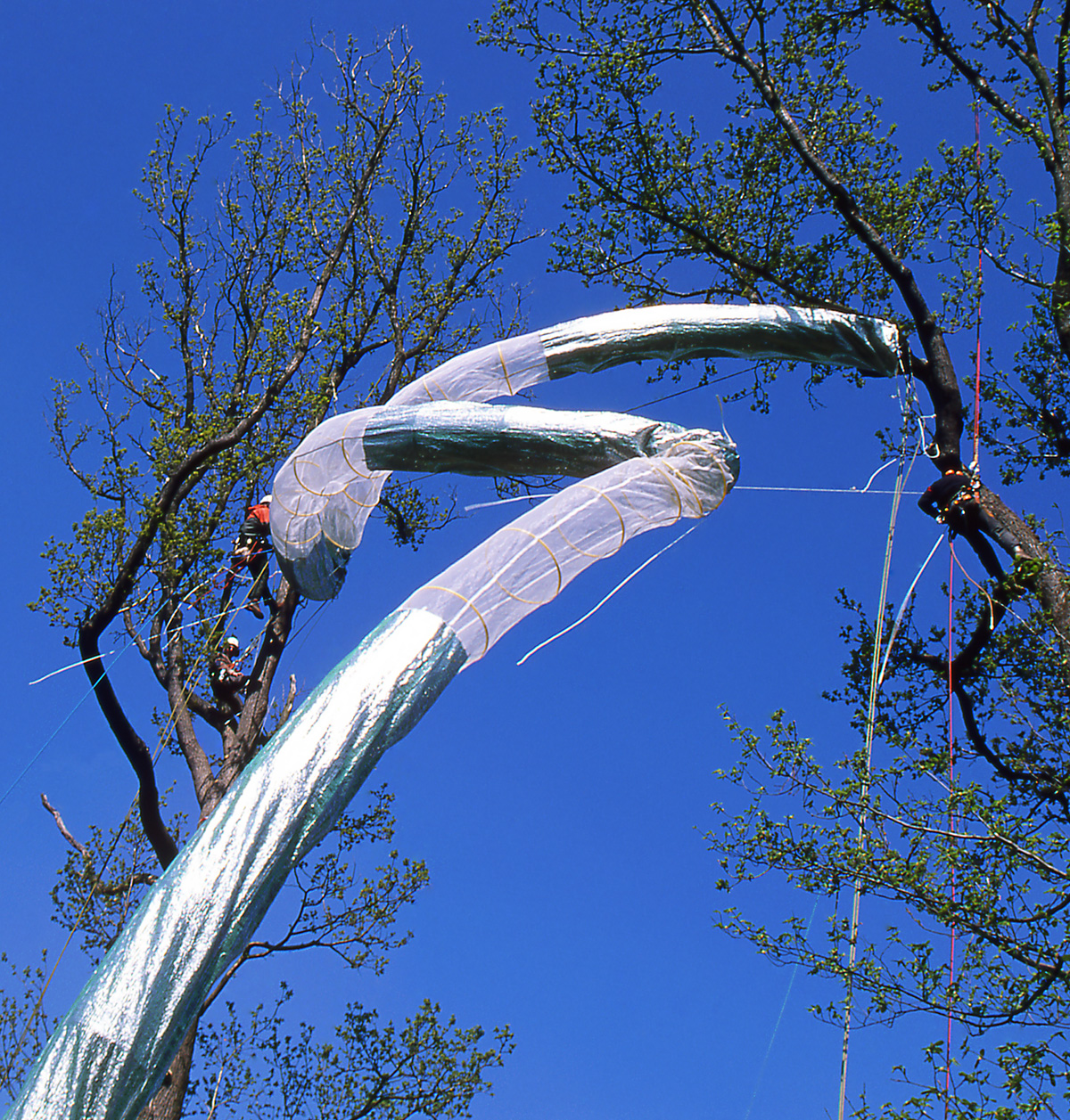 滑り台:全長66m、農業用特殊合成繊維(アルミニウム、PVC)、フラフープ100個。