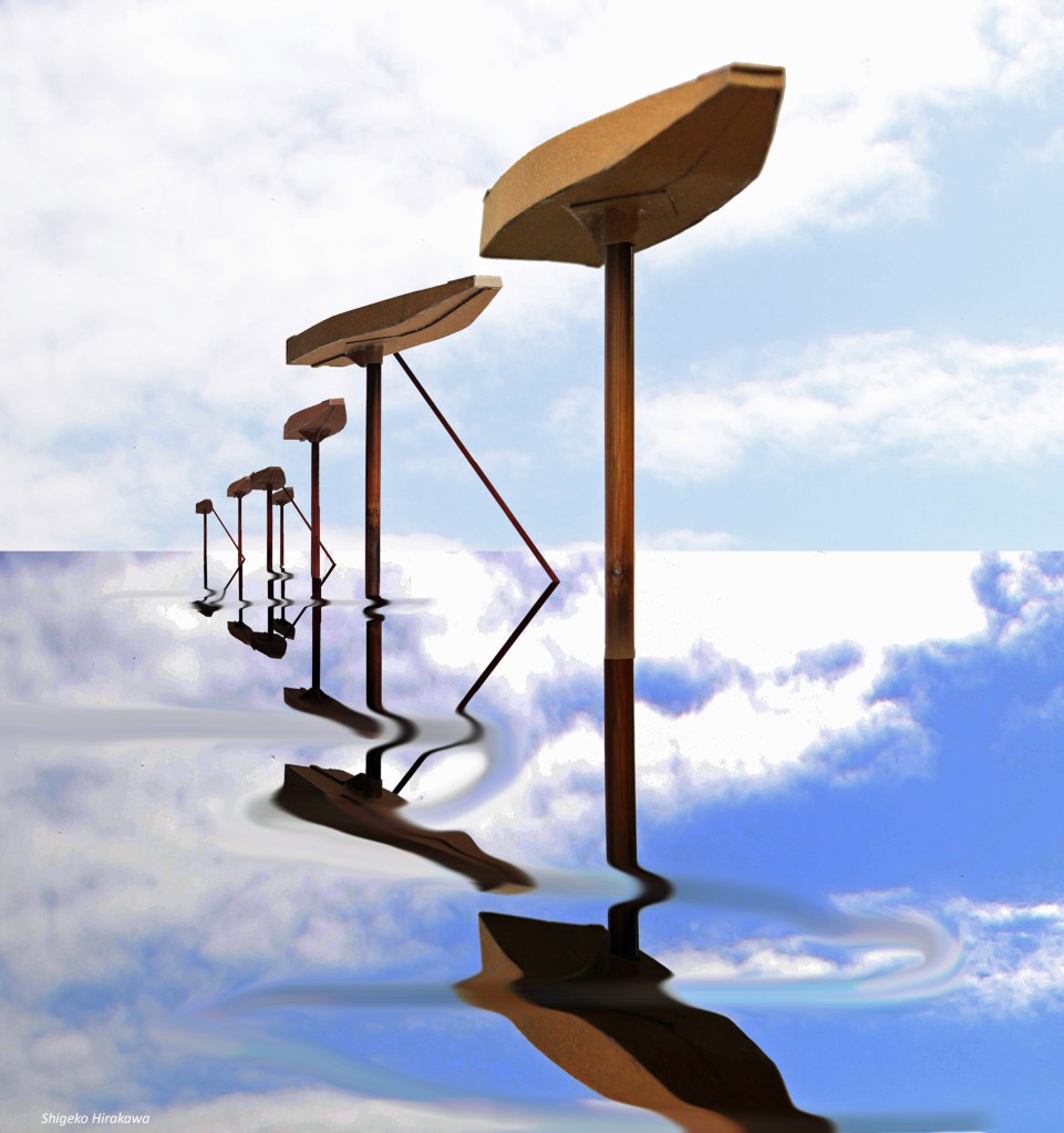 Environmental Art Project of Shigeko Hirakawa « Perched Boats » for a floody region