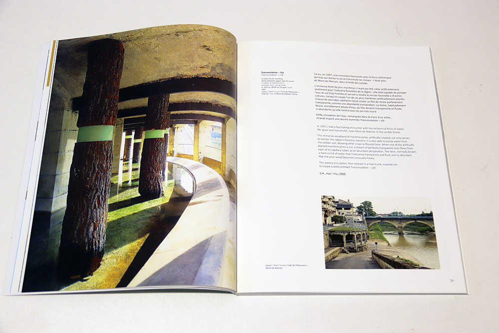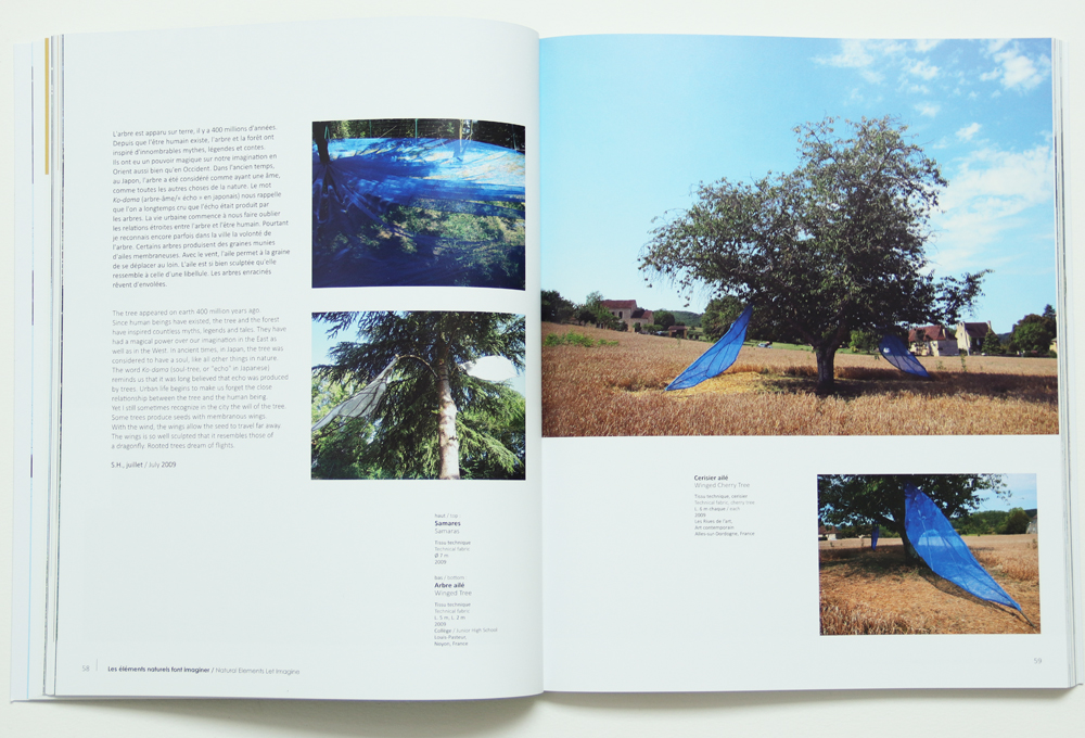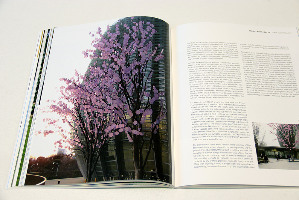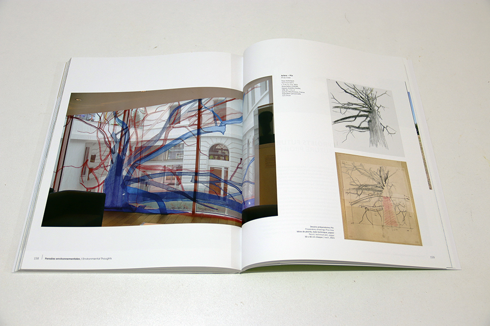 For example, the ecological project entitled “Air in Peril?” spans many pages, showcasing works created over eight years, from the exhibition in Argenteuil to Chaumont-sur-Loire.